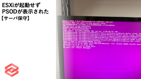この紫の画面、PSOD ( Purple Screen of Diagnostics / Purple Screen of Death )と言うらしく、Windowsで言うブルースクリーンと同じみたいです。