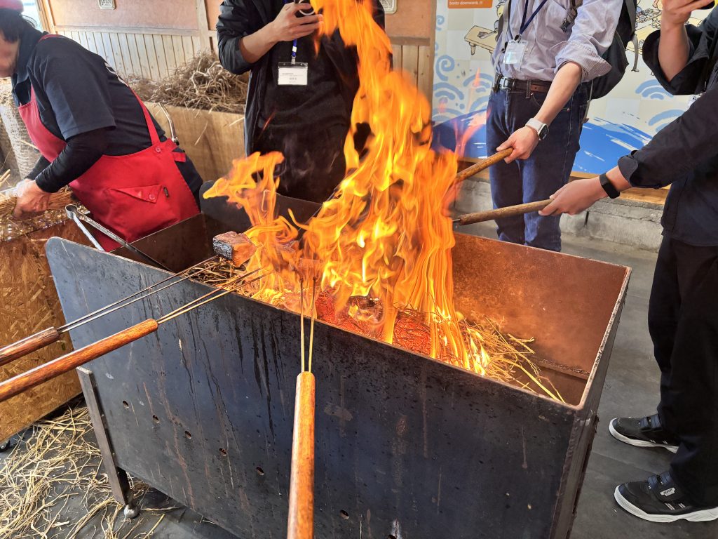 アウトドアセッションでは,鰹の藁焼き体験をしました.焼いた鰹をそのままお刺身で食べました.