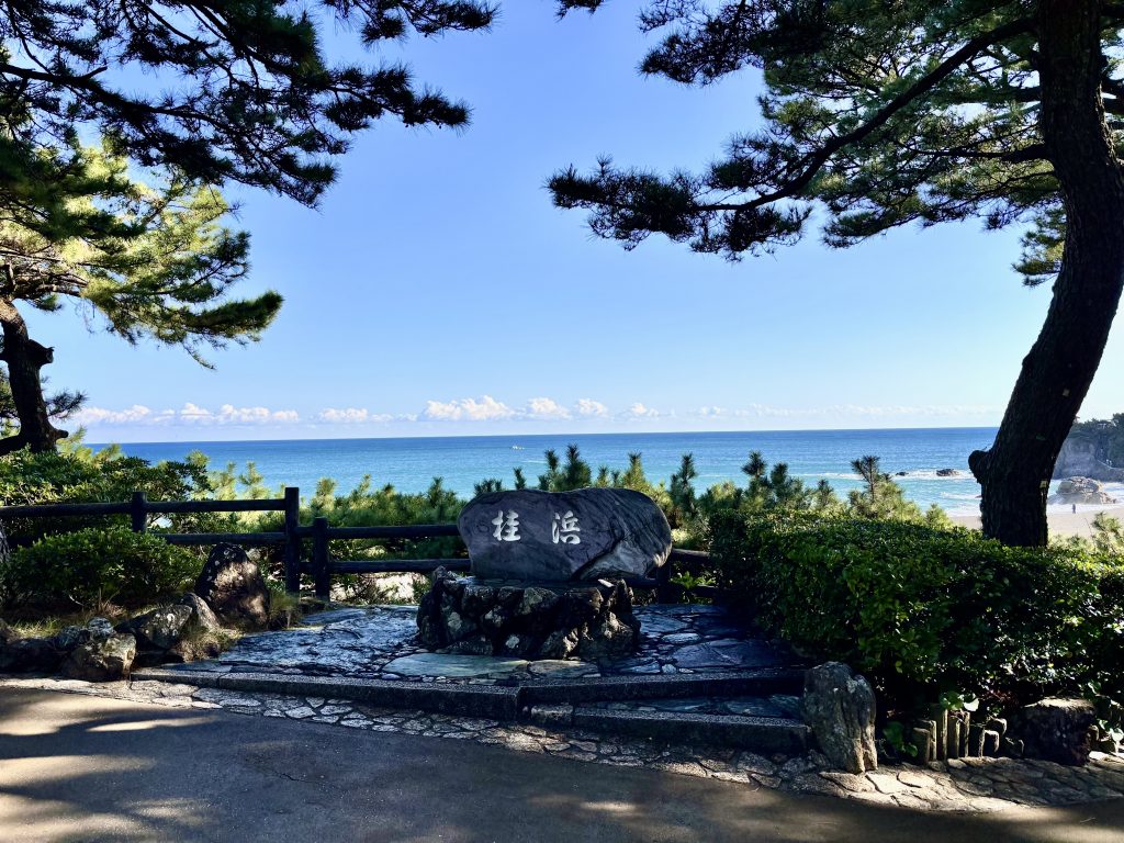 桂浜を観光しました.日本海側で天気がよくても波が高かったです.