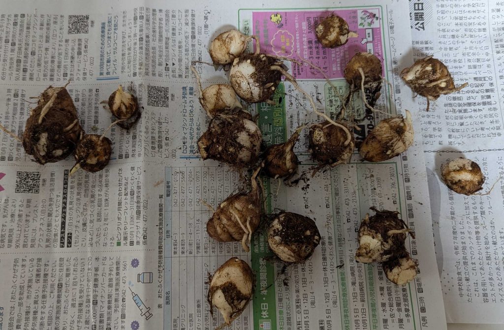 プランター里芋の収穫 投稿日: 2025年11月14日2025年11月14日 投稿者: Shoya Kitagawa 北川です. 10月中旬に2株の里芋の収穫を行いましが小ぶりなものが多く残念でした. プランターの広さが足りなかったのか,夏場で水不足だったのか,反省点がいくつかでてきましたので次回に生かしたいと思います. もうIoTで土壌水分量とか管理したほうが楽そうなので次回はESP32を使って栽培してみようと思います. 味は普通に里芋でした.普通なのが素晴らしい.前回のじゃがいもは味が薄かったので今回は普通の味で良かったです.