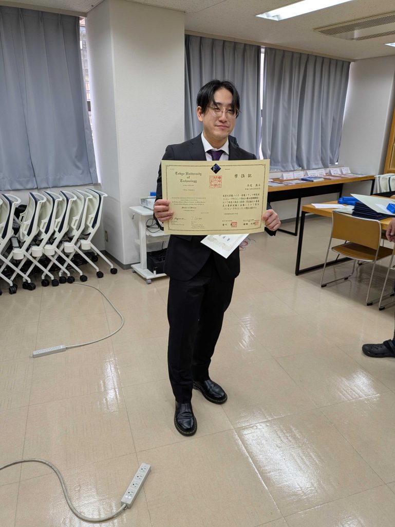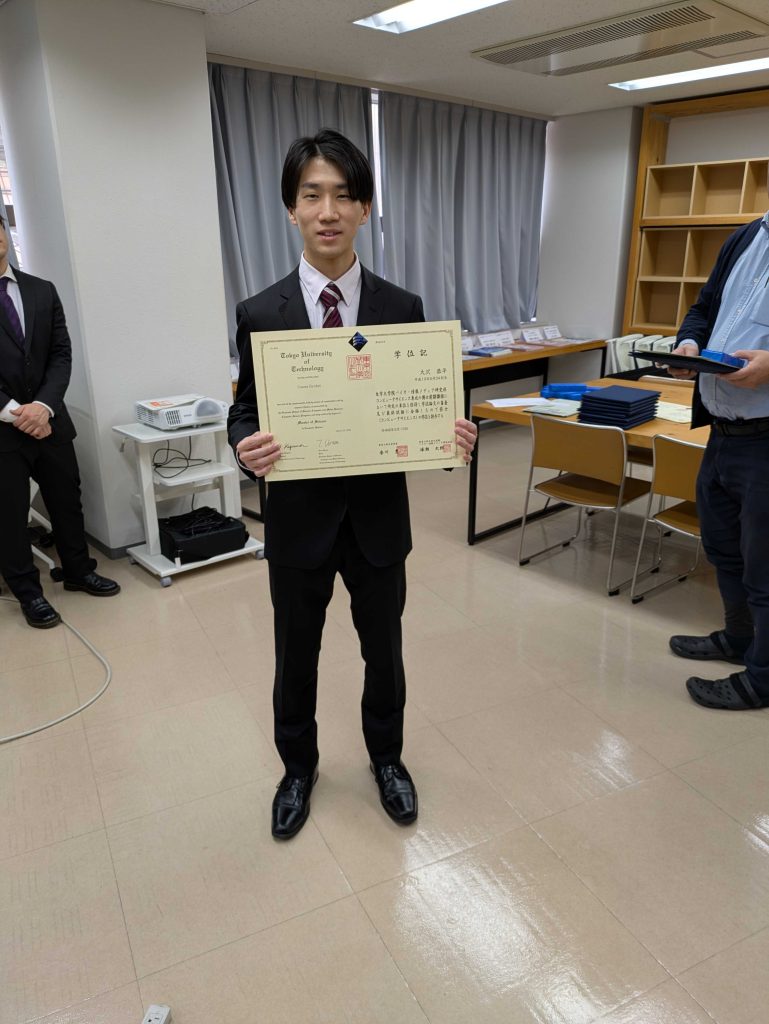CDSLの26卒の学生が卒業しました(1) 投稿日: 2026年3月21日2026年3月21日 投稿者: Kaito Arita 2026年3月19日にCDSLの26卒の学生が卒業しました.平尾真斗さん(特別賞) 平尾真斗さん(学位授与) 大沢恭平さん